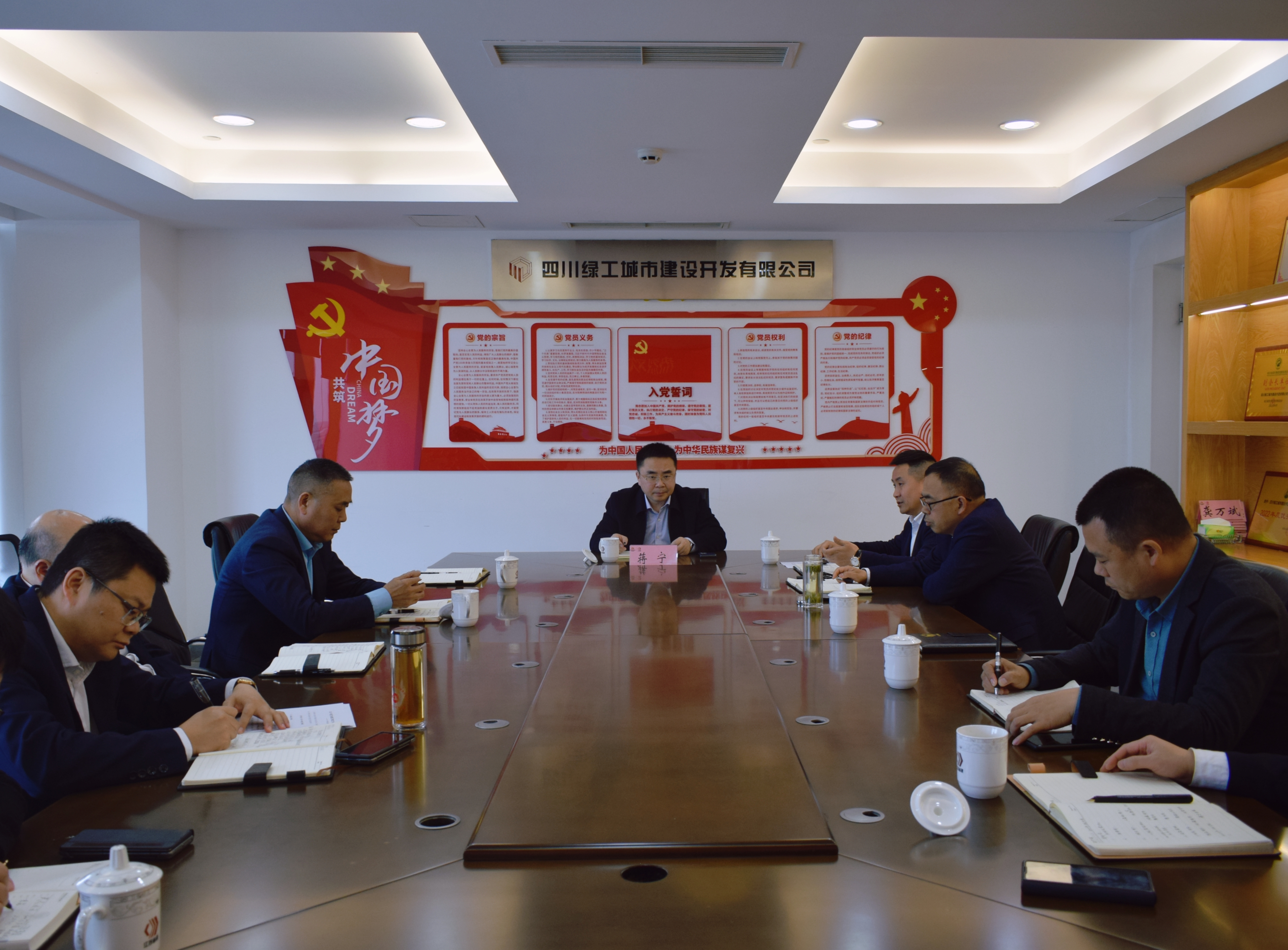 3月29日,集團總裁蔣寧赴四川綠工城市建設開發(fā)有限公司調(diào)研指導工作。集團總裁助理、四川綠工董事長龔萬斌,集團總裁助理、法務總監(jiān)朱雙海,四川綠工總經(jīng)理羅永建參加座談。