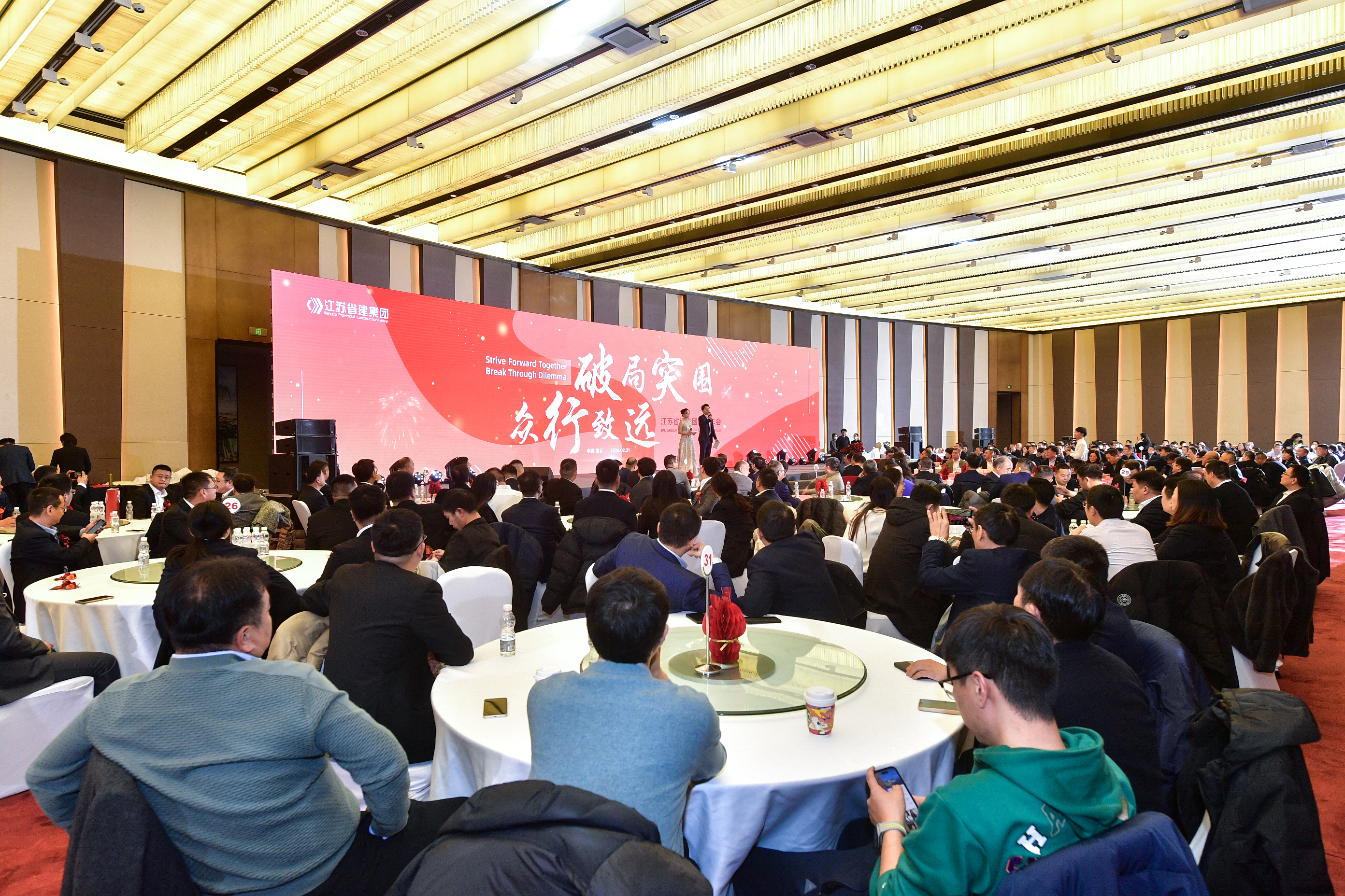 2月21日下午,“破局突圍 眾行致遠(yuǎn)”江蘇省建集團(tuán)新春年會在南京華泰萬麗酒店舉行。江蘇省住房和城鄉(xiāng)建設(shè)廳黨組成員、副廳長李震,綠地集團(tuán)執(zhí)行總裁、綠地大基建集團(tuán)總裁陳軍,省住房和城鄉(xiāng)建設(shè)廳建筑市場監(jiān)管處處長汪志強(qiáng)、工程質(zhì)量安全監(jiān)管處處長蔣惠明、行政審批處處長肖屹、省建設(shè)工程招標(biāo)投標(biāo)辦公室主任顧穎,綠地大基建集團(tuán)運(yùn)營管理中心總經(jīng)理劉青、總經(jīng)理助理鄭景申,集團(tuán)公司董事長陳正華、總裁蔣寧、黨委書記仇天青,與300余名省建人齊聚一堂,分享喜悅,見證榮耀,共啟新年奮進(jìn)之路。