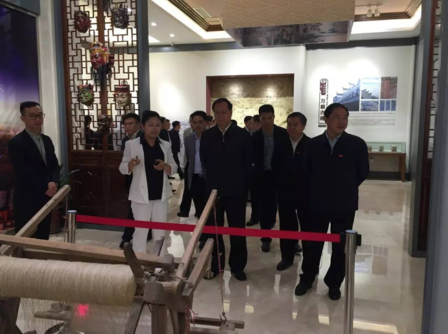 毛偉明首先視察了萬(wàn)載古城文化展示中心,領(lǐng)略了當(dāng)?shù)厣詈竦拿袼?、非遺文化,并認(rèn)真聽(tīng)取了集團(tuán)萬(wàn)載瑞辰文化旅游發(fā)展有限公司總經(jīng)理張藜對(duì)古城項(xiàng)目的詳細(xì)介紹。